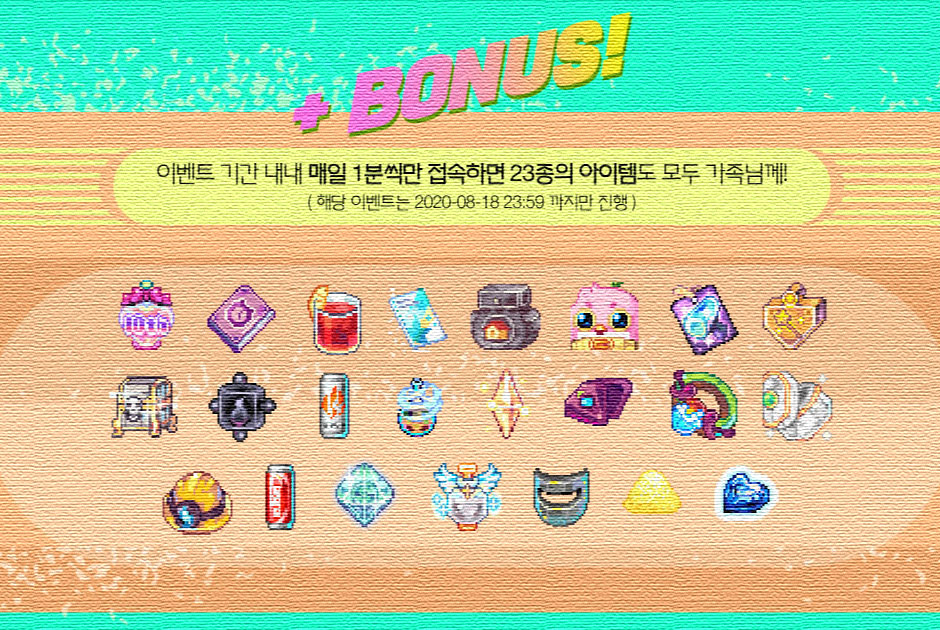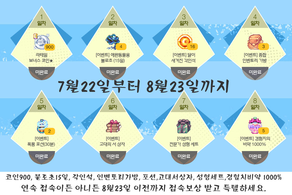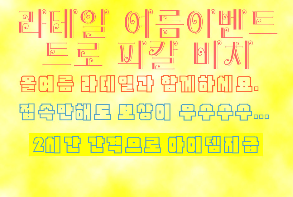 라테일 23종 아이템을 매일 1분만 접속해도 접속한 캐릭에 모두 지급한다 하네요.