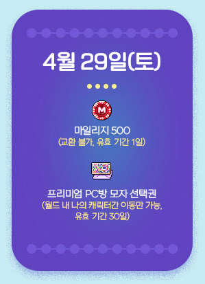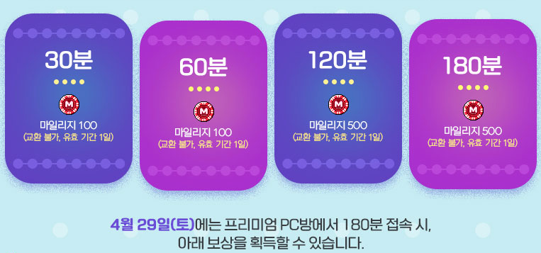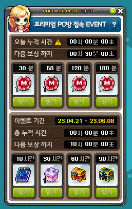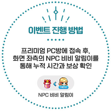 [메이플스토리] PC방 이벤트 메이플스토리 프리미엄PC방 원격피시방 지피방 120시간 일일 접속 마일리지 보상