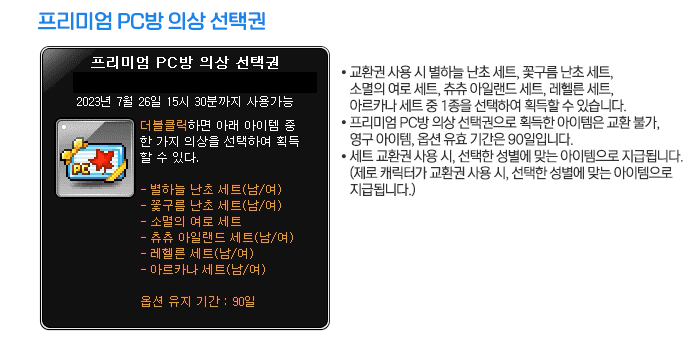 프리미엄 피시방 의상 선택권