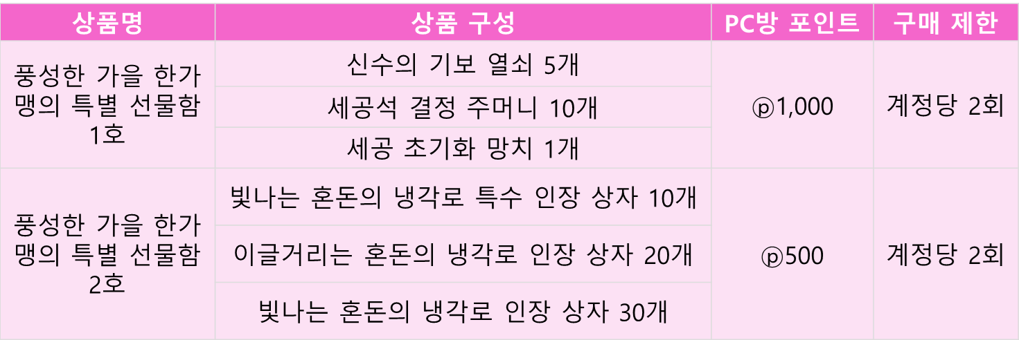 10월11일까지 피시방 전용샵 구매가능