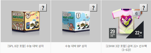 [SPL 8강 포함] 수능 대박 상자 (구성품 6종 중 서로 다른 확률로 1종 획득)
