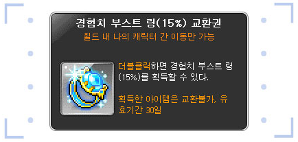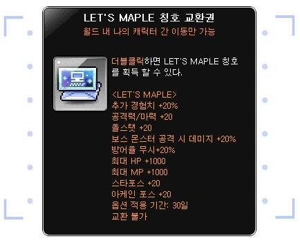 교환권을 사용하여 얻은 칭호는 교환 불가, 영구 아이템, 옵션 적용 기간 30일이내