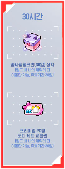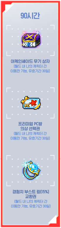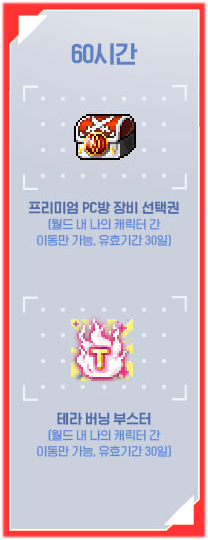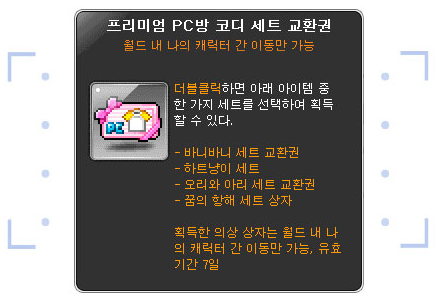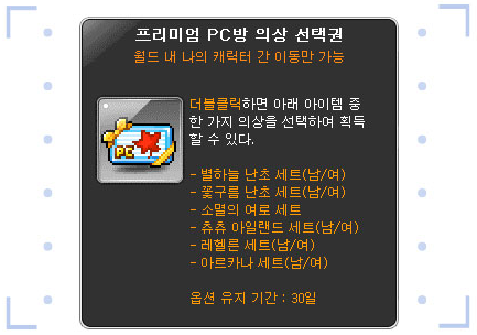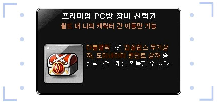 프리미엄 PC방에서 180분 접속시 메이플에서 아래 보상아이템을 획득할 수 있습니다.