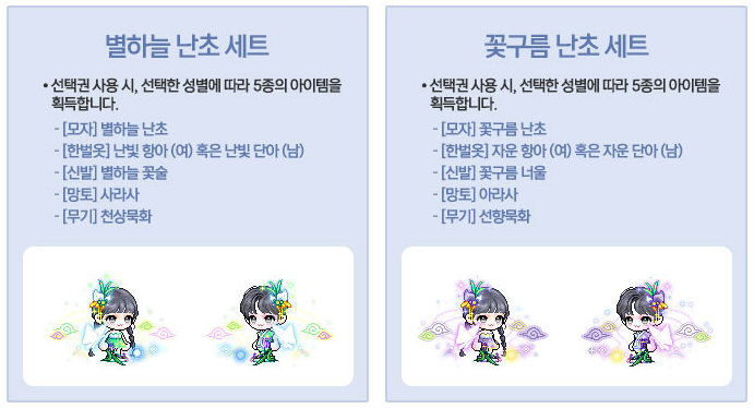 메이플스토리 별하늘 난초 의상세트, 꽃구름 난초 의상세트