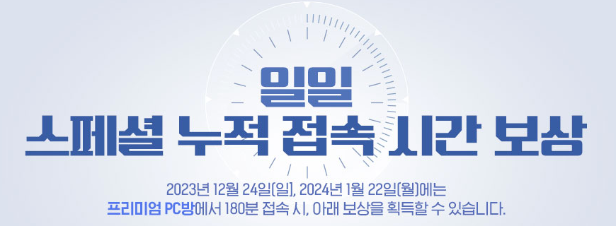 23년 12월24일(일요일) / 24년 1월22일(월요일) 프리미엄피시방 180분 접속시 보상