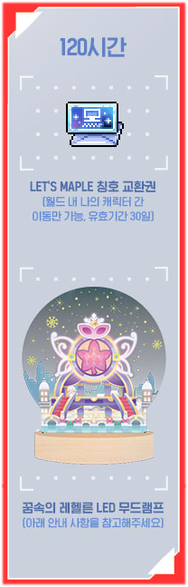 프리미엄PC방 메이플 버닝 누적 120시간 달성하신 용사닐들 께<꿈속의 레헬른 LED 무드램프> 발송