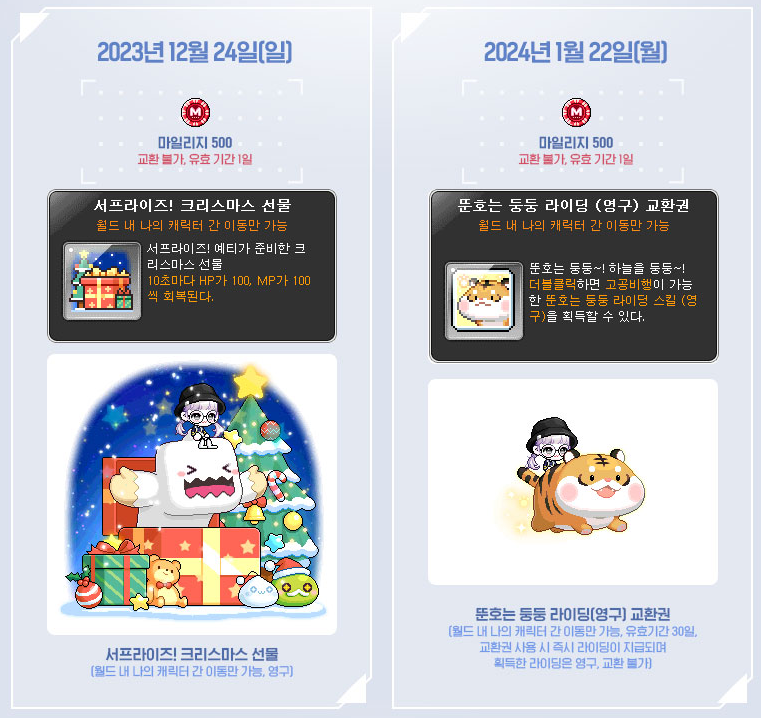 2023년 겨울메이플스토리 PC게임 스페셜 누적 접속 시간 보상 안내