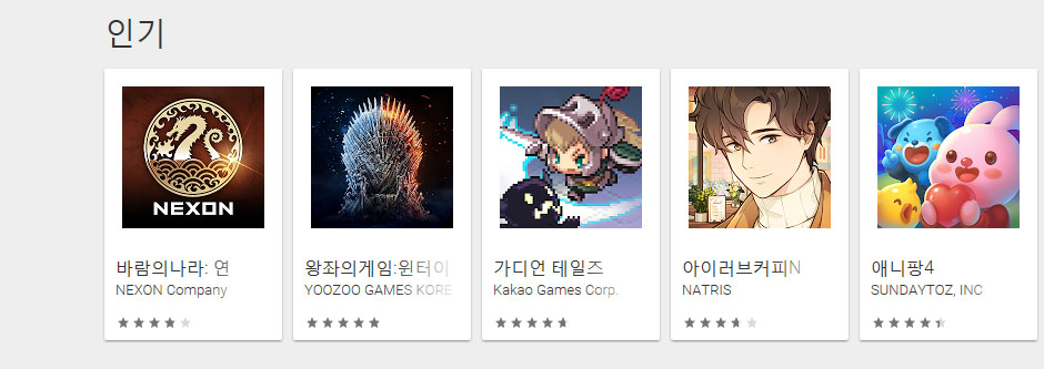 모바일 앱스토어, 원스토어 매출 게임 2위