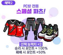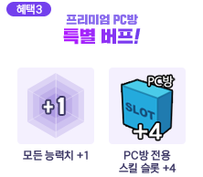 모든 능력치 +1, PC방 전용 스킬 슬롯 4개 추가
