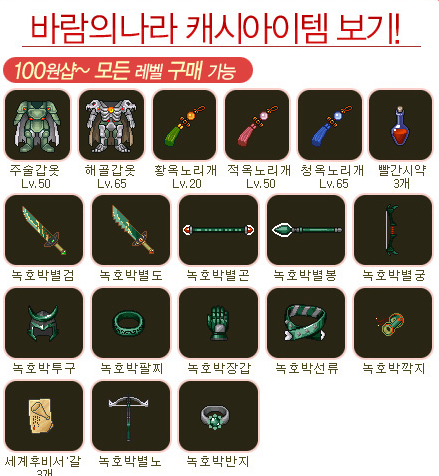 - 100원~300원 최저가 PC방 아이템 구매하여 경험치 상승과 함께 내 캐릭터를 멋지게 꾸밀 수 있어요!