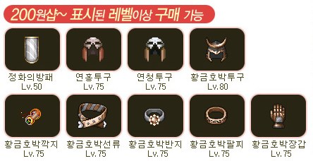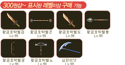 - 직업 포지션 및 레벨(승급)에 맞는 무기/갑옷/투구/반지 4종 아이템을 4시간 동안 제공합니다!!
